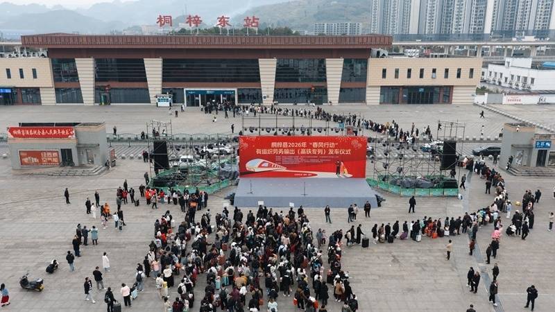 就业是最大的民生。2月22日上午,贵州省桐梓县在桐梓东站站前广场举行2026年“春风行动”有组织劳务输出(高铁专列)发车仪式,570名外出务工人员怀揣着家人的期盼与对美好生活的向往,有序登上G4553次返岗专列,开启新一年的奋斗之旅。