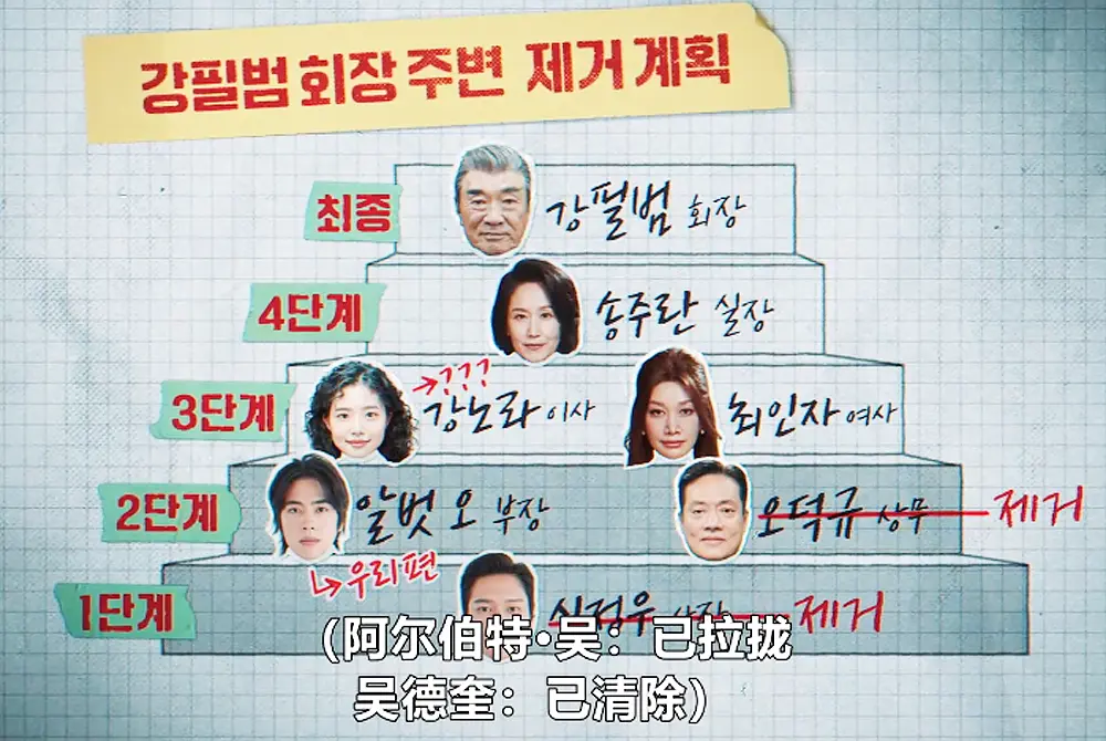 在让初恋出局后,洪金宝选择拉拢初恋,让他加入汝矣岛海盗团协助自己,然后他们携手盗走了宋主兰办公室保险柜里存放着韩民证券各支行行长为筹措秘密资金提供借名账户的证据和印鉴章,成功取出资金又扫了不少财团的股票不说,还成功嫁祸给别人。洪金宝先让富三代故意跟亲爹自爆论坛的事情,让亲爹为其遮掩之后又借宋主兰的手捅到会长外公面前,将秘密资金被盗甩锅给亲爹,之后让初恋打给会长放料借名账户的钱也没了,宋主兰失去信任,完成双杀!