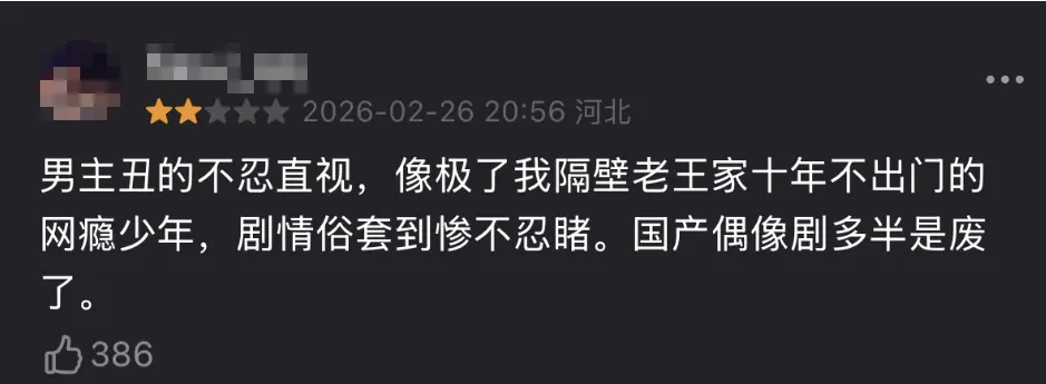 他的表演缺乏最基本的呼吸感与成长弧光,台词含糊、语调平平,观众看剧全靠字幕,感受不到角色的情感波动。
