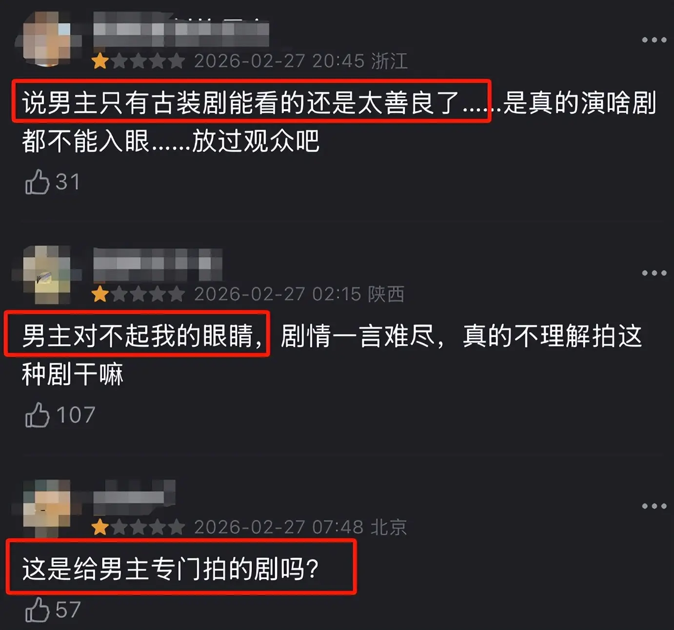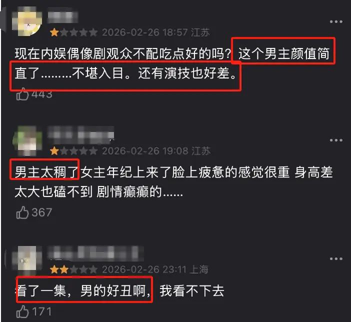 观众集中吐槽剧中的一位主角,说他一颗老鼠屎毁了一锅粥。